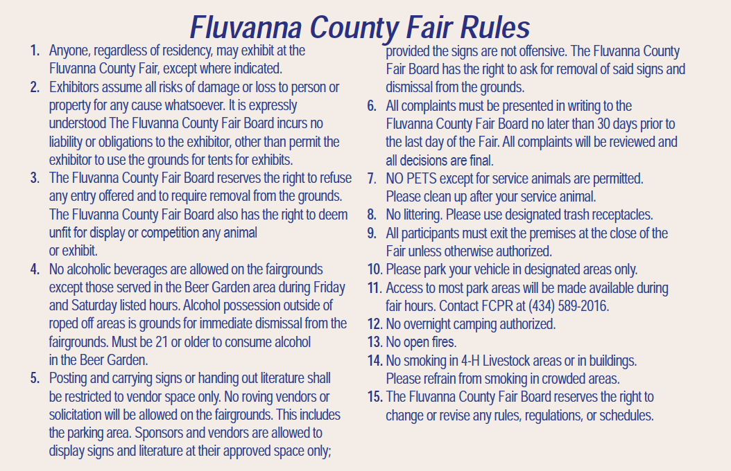 Looking for all the Fluvanna County Fair info? Check out the Program at the link below.